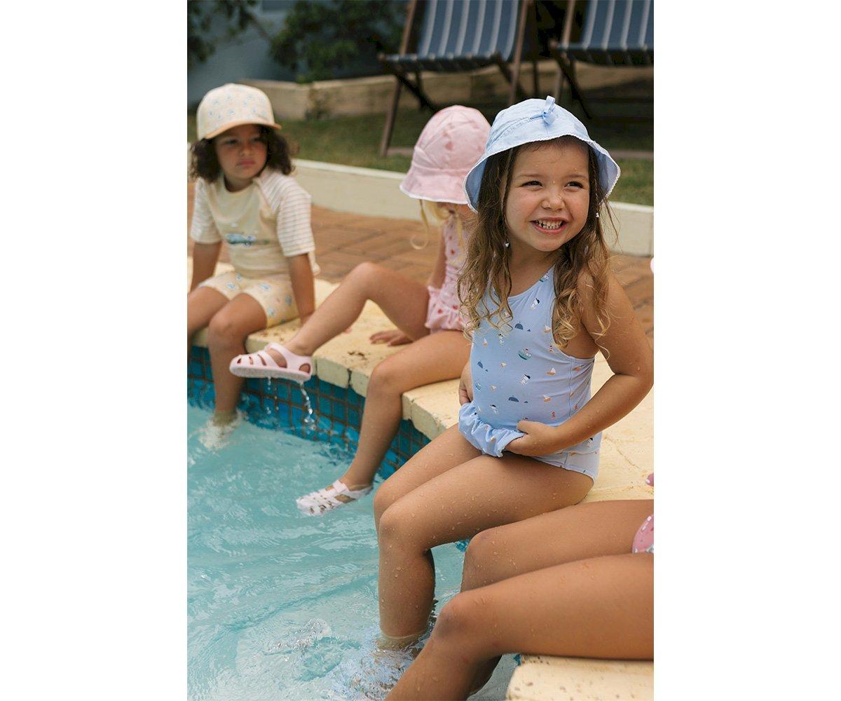 Los peques disfrutarán de los días de verano protegidos con los nuevos bañadores cruzados de las colecciones Verano Monnëka 2025. Están confeccionados con una tela especial que protege la piel de los rayos solares.