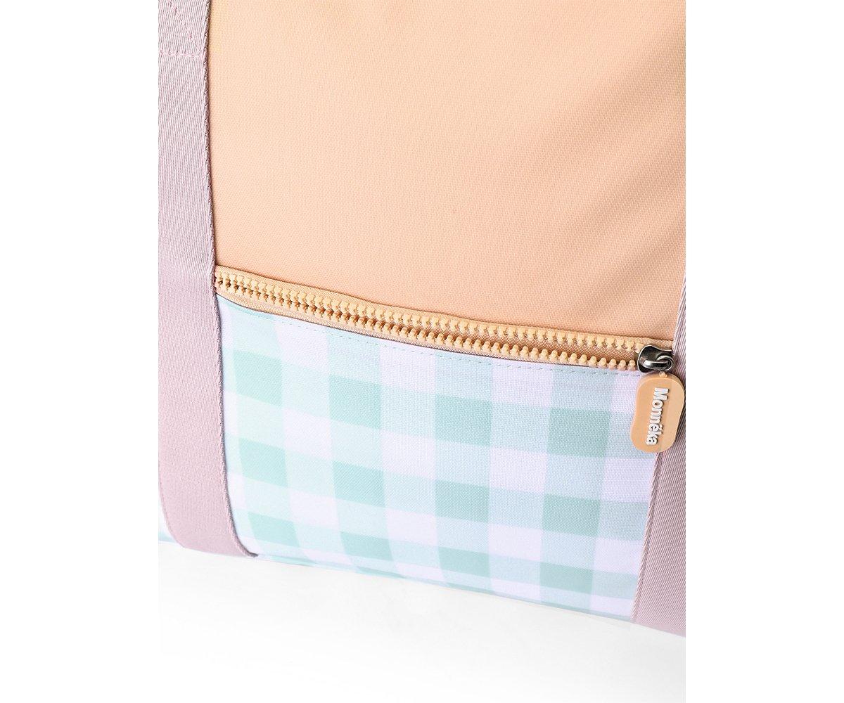Cuenta con 2 asas cortas para llevar al hombro y poder colgarlo y con un asa larga ajustable que podrás quitar y poner para llevarlo cruzado. En el exterior cuenta con un bolsillito con cierre de cremallera, no térmico, para llevar pequeñas pertenencias más a mano.